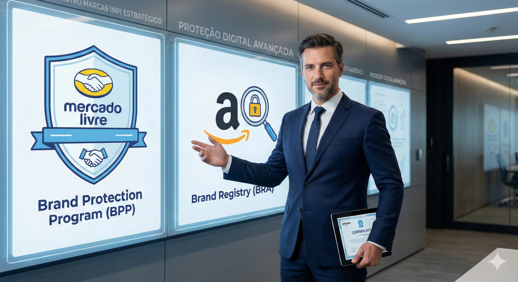 Para quem opera nessas plataformas, o pesadelo da contrafação e do “sequestro” de anúncios é uma realidade constante. Sem a devida proteção formalizada, o empreendedor fica vulnerável a cópias baratas que diluem a força da sua identidade visual. É neste ponto que a atuação perante o INPI se mostra indispensável. A adesão aos programas de proteção de marca destas gigantes do varejo exige, invariavelmente, a comprovação da titularidade sobre o sinal distintivo.