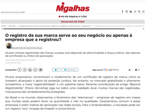 Muitos empresários comemoram o recebimento de um certificado de registro de marca como se tivessem alcançado o ápice da proteção jurídica. No entanto, no mercado globalizado e altamente competitivo, a mera “registrabilidade” é um patamar baixo. Recente contribuição do artigo “Beyond Registrability” (Flavio Dervishaj) joga luz sobre uma realidade dura: muitas marcas são registradas, mas poucas são verdadeiramente protegidas.